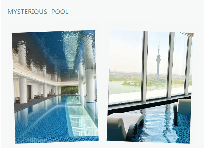 “抬頭仰望是天空,低頭俯瞰皆是江南美景”。說到這座高達(dá)43.95米的透明懸空泳池,它擁有整個酒店巨佳的觀景視角。