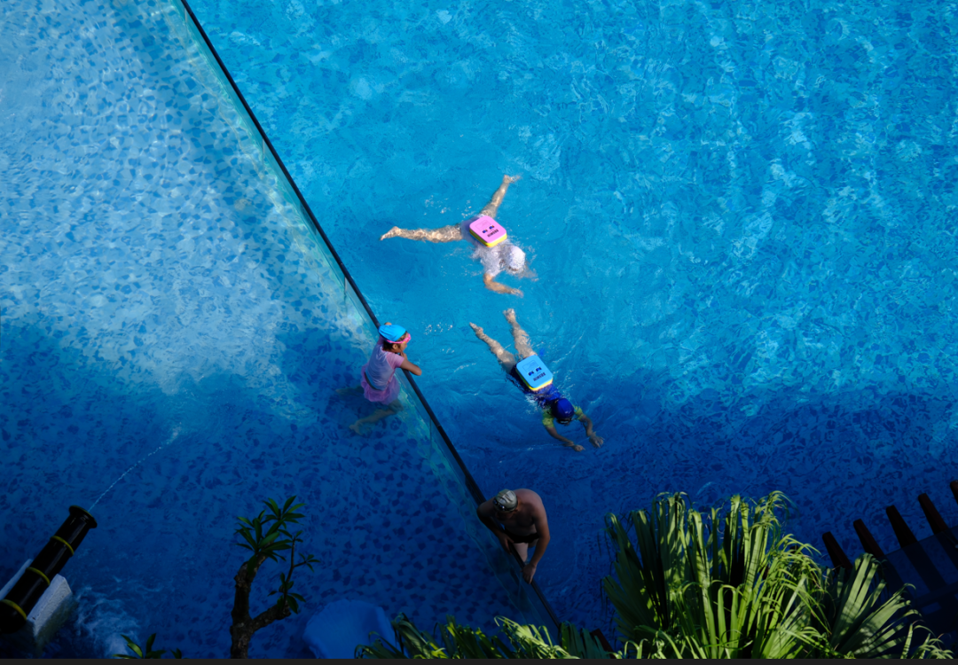 l 氯含量比普通泳池低80%,寶寶玩水不揉眼睛,敏感肌女孩貼膚游完也不泛紅;